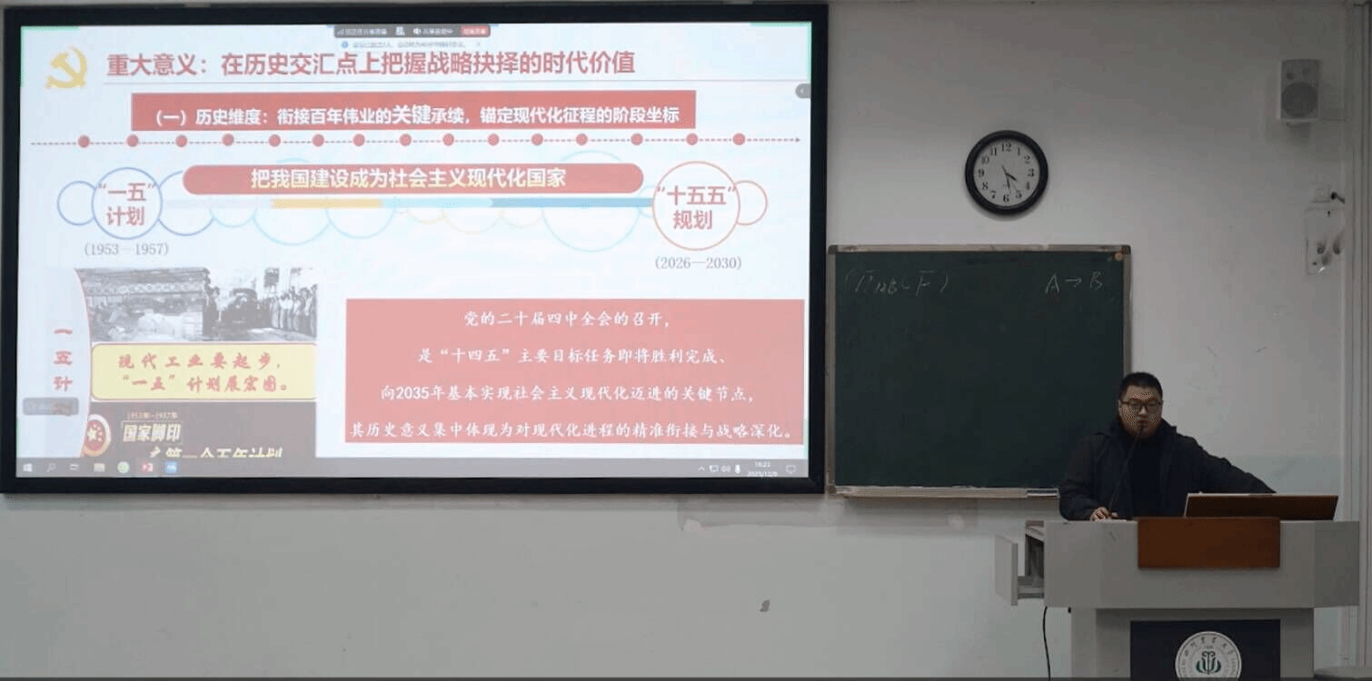 会上,数据科学第一学生党支部书记李航老师结合党的二十届四中全会审议通过的《中共中央乐鱼网页制定国民经济和社会发展第十五个五年规划的建议》,从历史、理论、实践、国际四个维度,系统阐释了全会召开的时代背景与战略意义。他指出,全会精准把握我国发展历史方位,明确了“十五五”时期以高质量发展为主题、以科技自立自强为根本动力、以新质生产力为关键支撑的发展路径,而大数据作为数字中国建设的核心支撑学科,与“十五五”规划中数字经济、智慧治理、乡村振兴等战略部署高度契合。