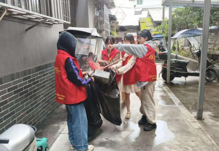 为弘扬和传播成都世运会“奉献、友爱、互助、进步”的志愿精神,9月29日上午,信息工程学院、法学院和人文学院的青年学子走进雅安市雨城区挺进路社区,聚焦社区内多个老旧院落,开展了一场为期三小时的垃圾清整志愿活动。