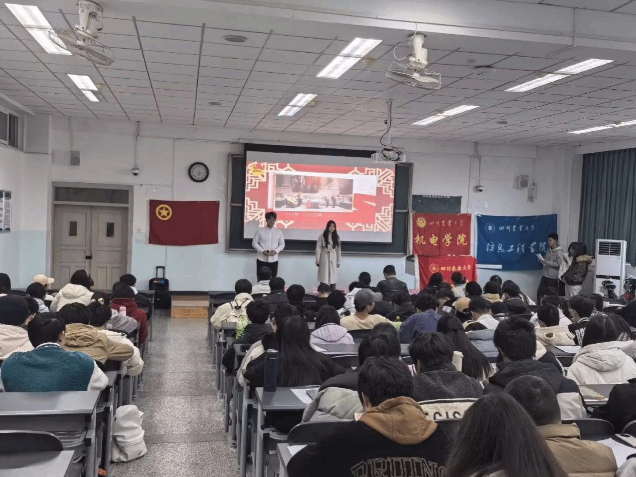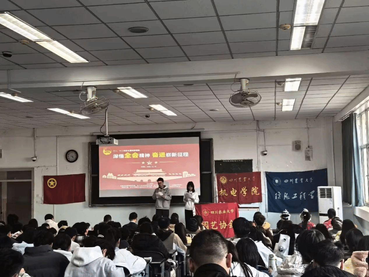 12月5日,信息工程学院大数据202504班团支部联合机电学院农机202402班团支部、电子202402班团支部、电气202504班团支部及学生无偿献血服务协会团支部、学生戏曲社团支部联合开展的“深悟全会精神,奋进崭新征程”主题班团活动于10教A403顺利开展。活动以“青言青语”传递党的创新理论,引导青年学子坚定理想信念,明晰个人成长与国家发展的紧密联系。150名学子参与其中。