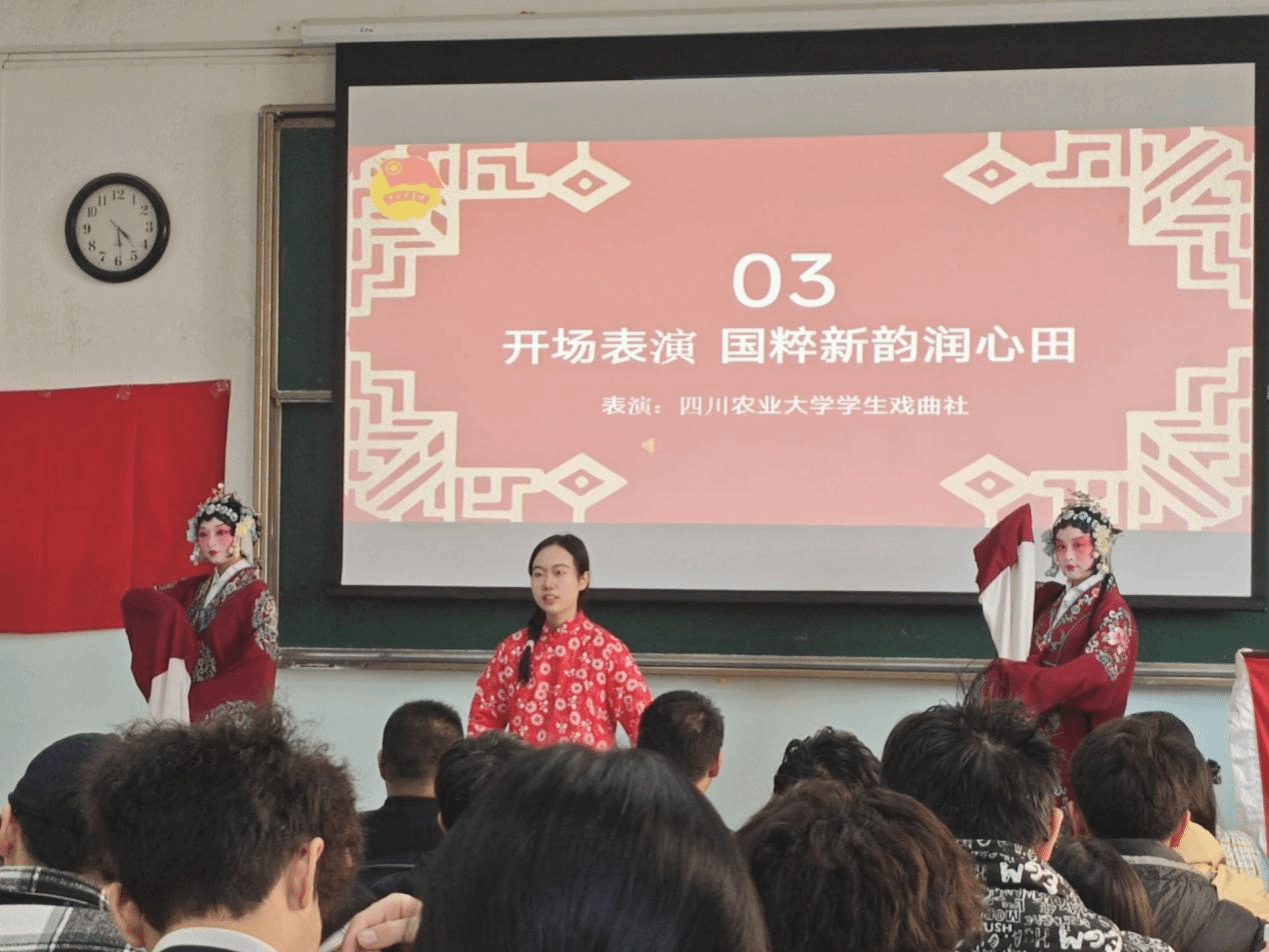 活动在嘹亮的《光荣啊,中国共青团》共青团团歌声中拉开序幕。校戏曲社带来《穆桂英挂帅》《红灯记》经典红色选段展演,以传统艺术韵律传递巾帼担当与革命信念,让红色基因在青年心中扎根。
