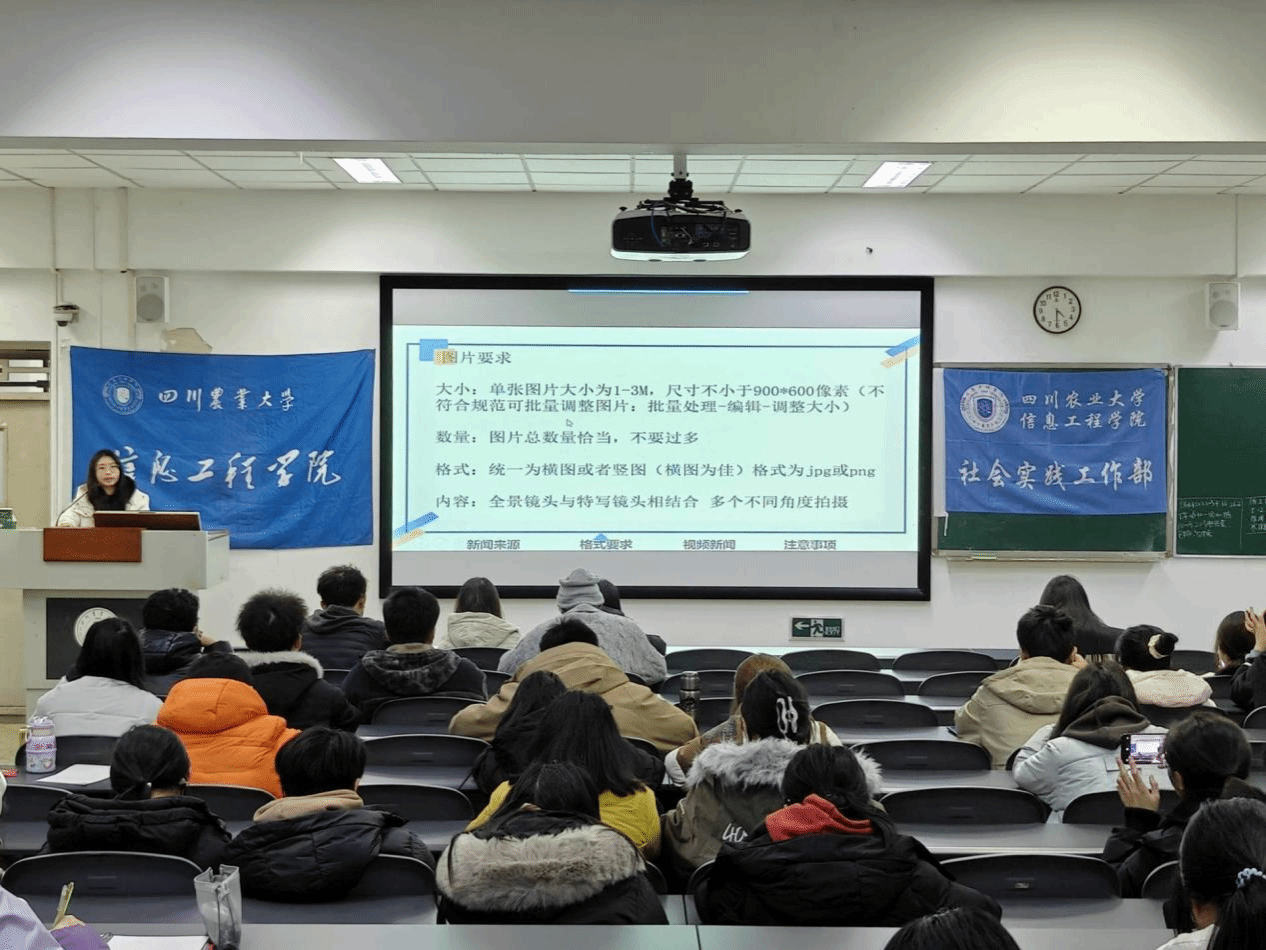 仪式伊始,院团委全媒体中心廖栖冉围绕社会实践新闻稿撰写与投稿流程展开培训。她结合新青年通讯社材料,从新闻来源、稿件格式、注意事项等方面详细讲解,强调新闻稿应注重实践对象与内容的深度挖掘,避免“宣传体”与“流水账”,通过聚焦人物故事与社会议题,传递真实深度的实践声音,提升宣传实效。