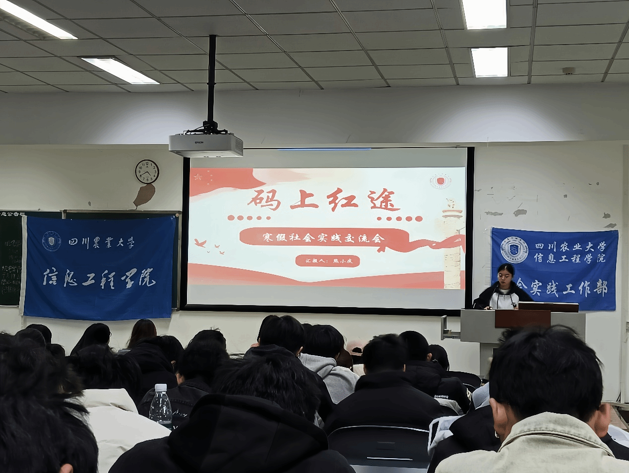 3月17日下午,信息工程学院2026年寒假社会实践交流会在十教b204如期举行。学院党委办公室副主任曹小娇老师、各优秀实践团队代表及全院学生150余名同学共同参与。