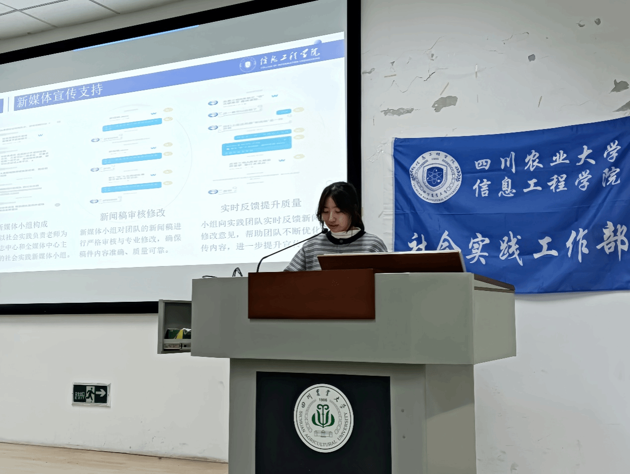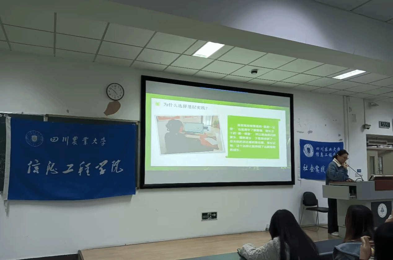 返家乡“典型个人”郭玉杰同学结合自身经历,分享其在河南省基层实践故事。实践期间,郭玉杰参与水井安全排查、乡镇交通疏导等工作,用实际行动服务基层群众,展现出信工学子扎根基层、服务家乡的责任担当。