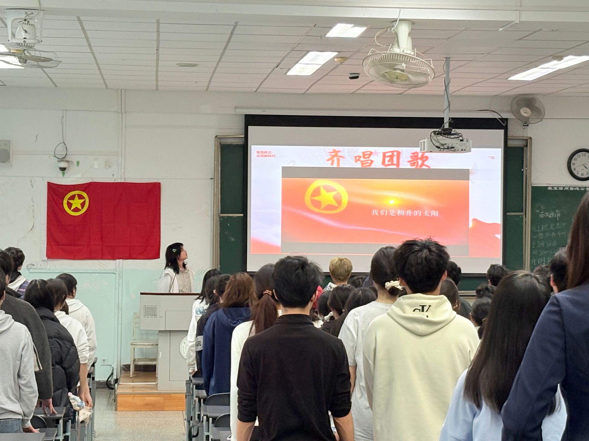 活动在全体成员齐唱《光荣啊,中国共青团》的嘹亮歌声中拉开帷幕,团歌奏响青春奋进旋律,同学们以饱满的热情开启本次理论学习与思想交流之旅。