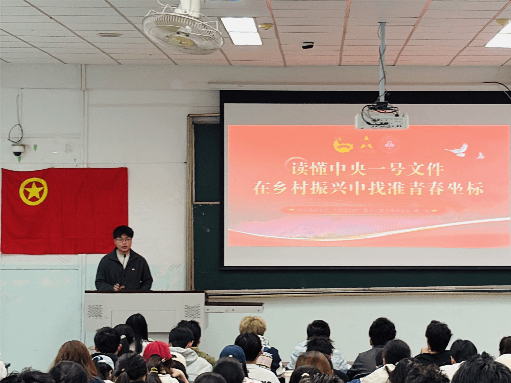 校青马工程第十二期主体班学员傅一凡以“读懂中央一号文件:在乡村振兴中找准青春坐标”为题开展专题分享,为同学们深入解读2026年中央一号文件核心要义。从农业农村现代化的整体部署,到粮食安全、农业新质生产力、农民稳定增收等关键关键词,从川农杨文教授团队大豆种植技术推广、“西南种芯-V1”智慧育种大模型研发的兴农实践,到青年人才下乡建功的时代号召,傅一凡用详实的案例、生动的讲解,让同学们深刻理解乡村振兴的时代内涵,明晰青年在农业现代化建设中的青春坐标。