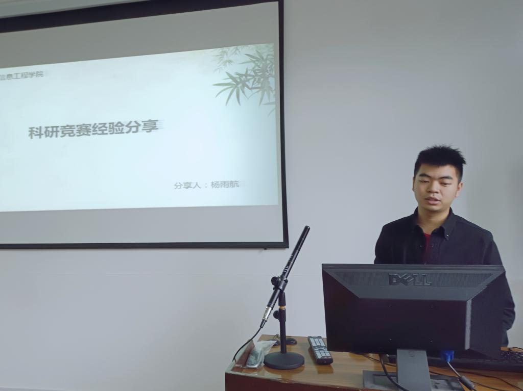 会上,王鸿杰同学就科研探索方面的内容进行了专题分享。他一开始就开门见山,谈到参与科研项目、发表论文的途径和方法,强调做科研不容易,要“耐得住寂寞、做得了分析、看得了文献、写得了论文”。他以自己的课题研究为例,介绍了他在计算机图像学的建模和模型训练等方面进行的科研探索。他谈到,无论是科研还是竞赛,要创新,也要与实际应用相结合,才能发挥出项目研究的价值。