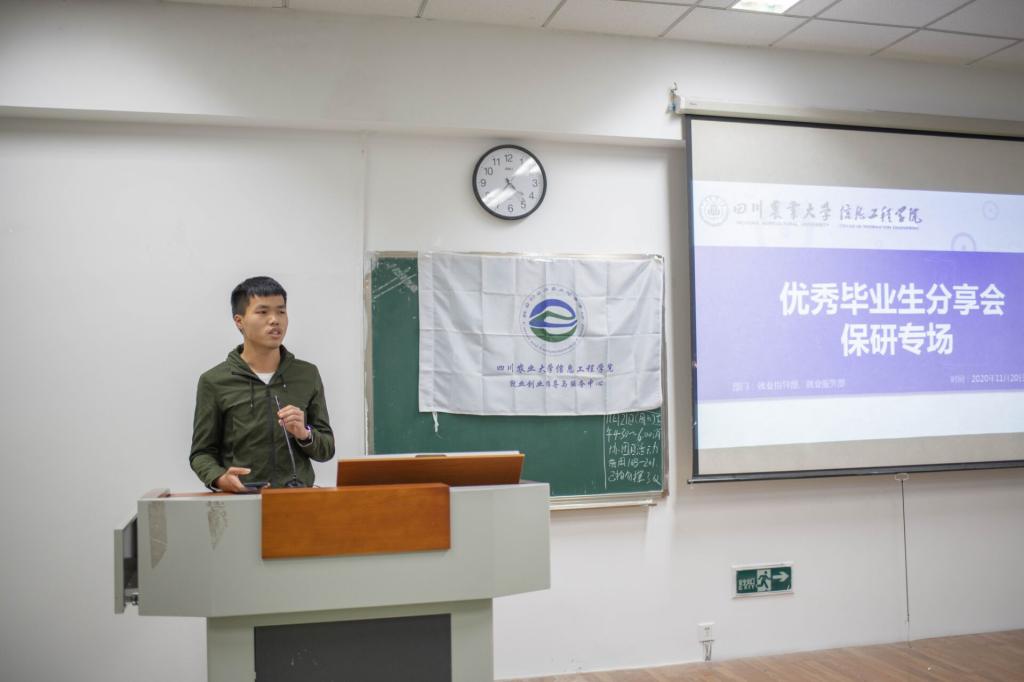 为加深学院同学对保研的了解, 11月20日下午16:20,信息工程学院就业指导部与就业服务部在十教B-201顺利举办了优秀毕业生分享会之保研专场。就业指导部陈彬彬担任主持人,全院200余名同学参会。
