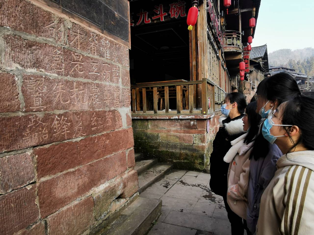 革命老区是新中国的摇篮,是新中国社会主义大厦的牢固基石,老区的革命传统和历史经验是非常宝贵的精神财富。“留住红色记忆、寻访红色遗迹”团队前往雅安市上里镇参观红军石刻碑林。石桥、石碑、石壁上书刻了“抗日救国”、“自救救国”、“只有共产党才能抗日反蒋!”、“红军是反蒋抗日的主力军”等革命口号,语言通俗易懂却又铿锵有力。“新思想新青年”小分队先后去到成都辛亥秋保路死事纪念碑和人民公园川军抗日将士阵亡纪念碑,纪念在爱国图存和抗日救亡运动中牺牲的无数革命烈士。在无名川军英雄雕塑前,同学们深刻感悟革命前辈不怕牺牲,勇克艰险,顽强拼搏的爱国主义革命精神。