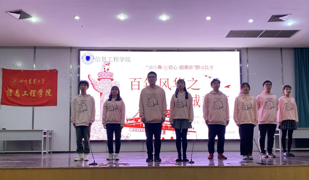 为庆祝中国共产党成立100周年,4月8日晚,信息工程学院在十教二楼小礼堂开展了“百年风华之赤诚‘新’声诵给党”朗诵大赛,前期全院有23个小班、学生组织或党支部参与,11个团队进入现场比拼环节,400余名现场观众参与互动,学院党委书记王中成、学院党办老师和团学组织学生主干担任评委并点评。