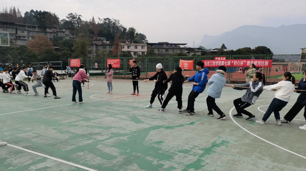 2021年12月3日中午,信工院体第七届“初心杯”新生拔河比赛决赛在三区篮球场顺利举行。