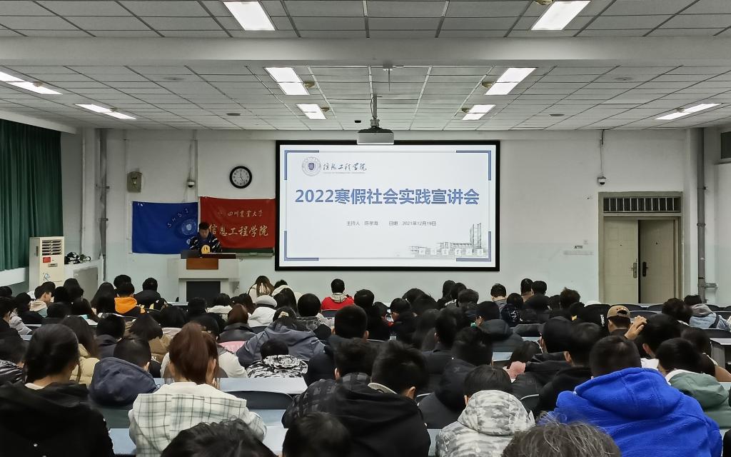2021年12月19日下午,信工院于10教A-201召开了2022年寒假社会实践宣讲会。本次宣讲会针对学院20、21级各班组织委员以及部分21级同学,旨在让同学们对社会实践有更深刻的了解,更有利高效开展寒假社会实践。宣讲会由陈孝海主持。