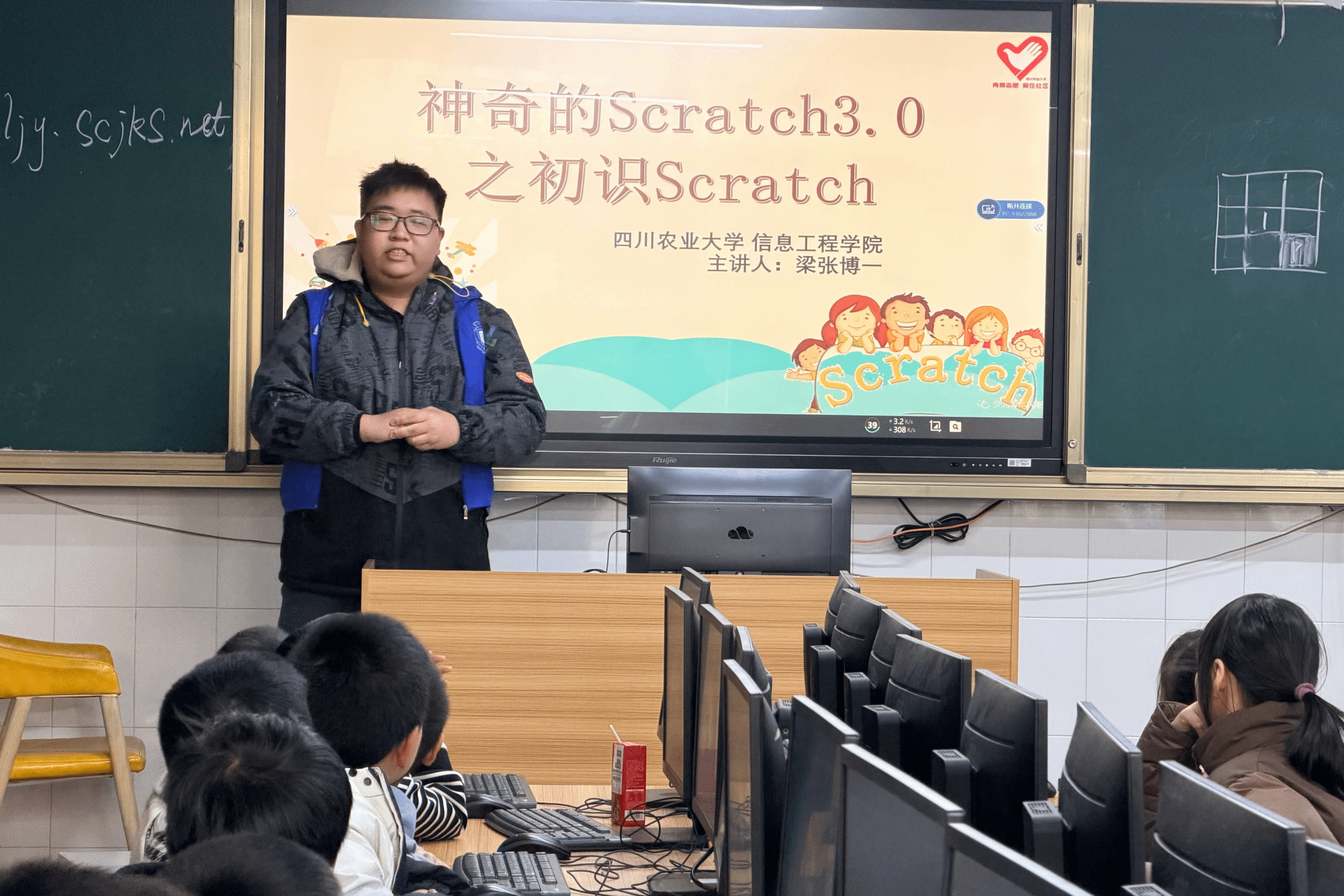 活动现场,大学生志愿者担任主讲与辅导角色。他们以生动演示,向同学们展示Scratch编程工具的基础操作与可能实现的动画、游戏效果。在志愿者一对一协助下,同学们亲自上手,学习拼接积木式指令块,控制角色移动、发声与交互。教学过程强调逻辑理解与实践操作相结合,鼓励同学们发挥想象力,尝试构建简单程序。