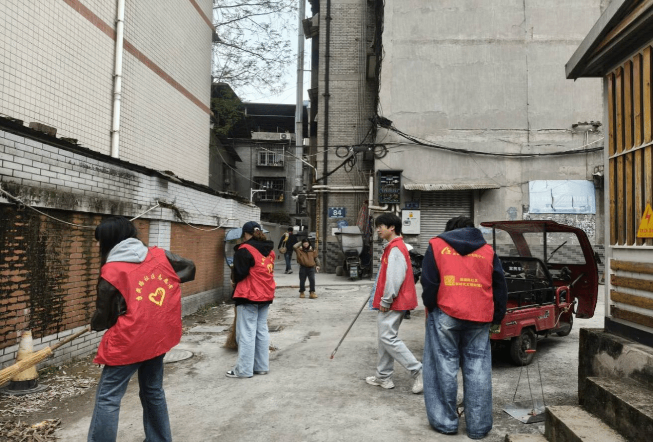 活动期间,同学们分组推进志愿工作。一组人员专注社区卫生打扫,对社区公共区域的垃圾、杂物进行全面清理,有序整理公共设施周边的卫生死角,助力营造整洁美观的社区居住环境。