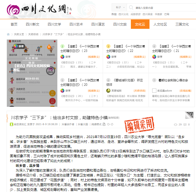为助力巩固脱贫攻坚成果,推动实现乡村振兴,2021年7月12日至19日,四川农业大学“寻光觅音”团队以“走乡域,听乡音... Read More